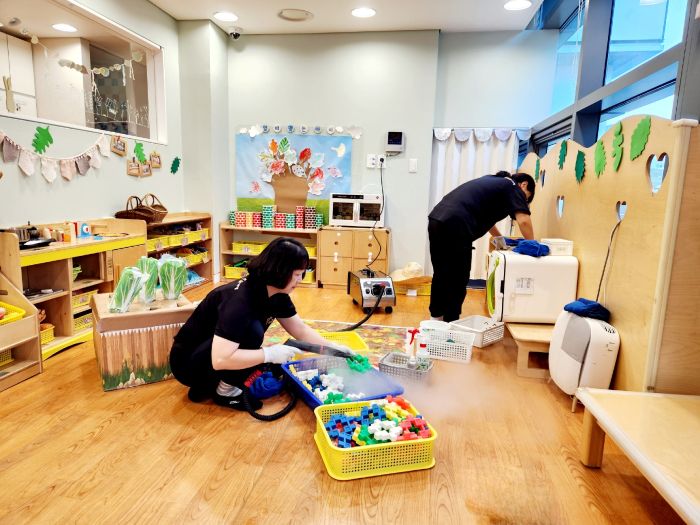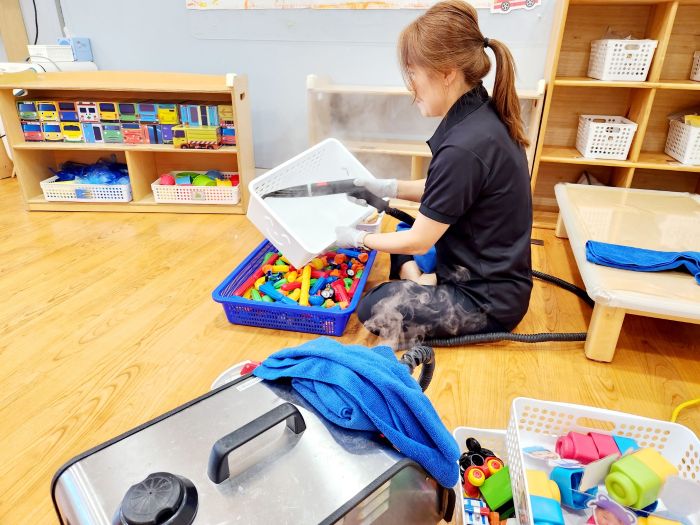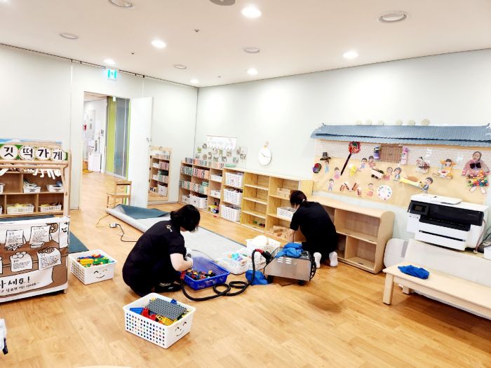 책걸상, 교구장, 교구재를 스팀세척살균소독 하였습니다.