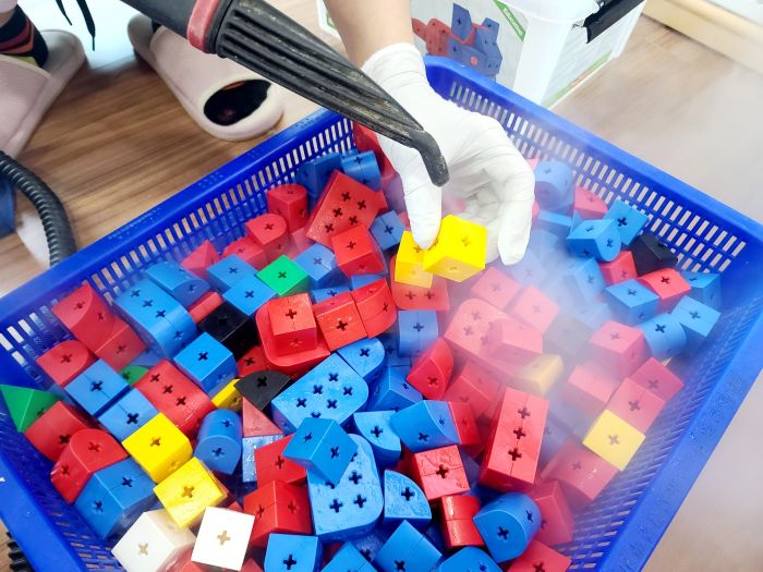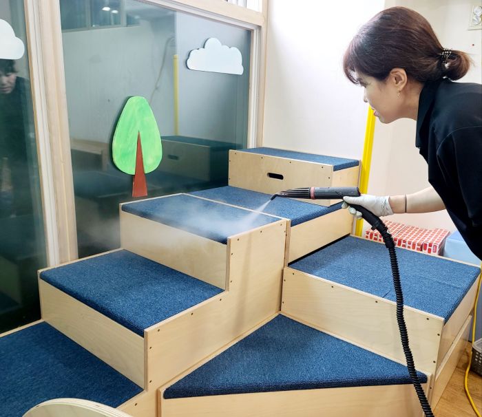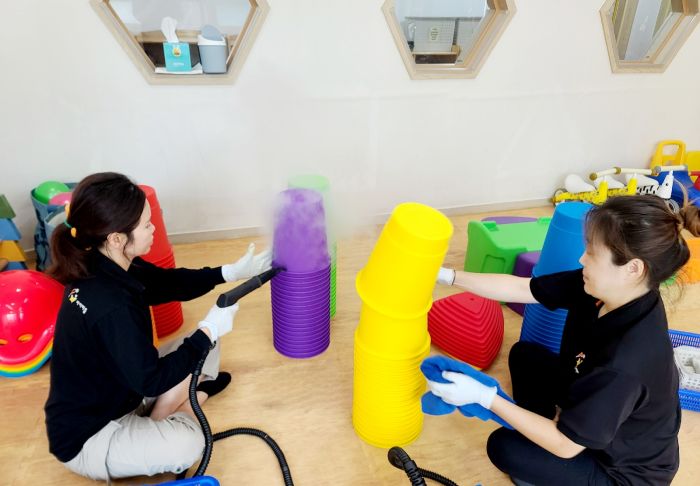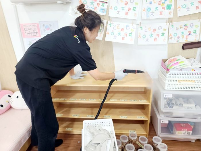 책걸상, 교구장, 교구재를 스팀세척살균소독 하였습니다.