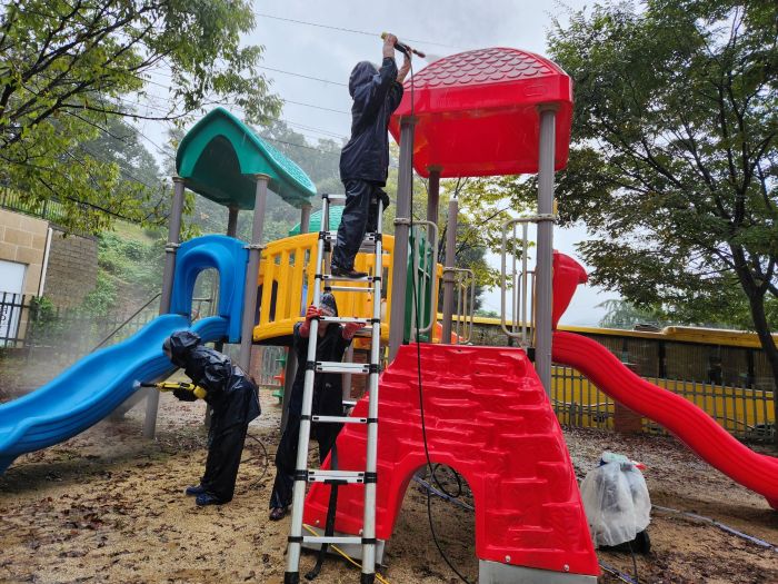 용인 제일초바깥놀이터를 세척작업하였습니다.