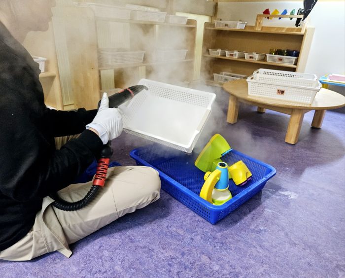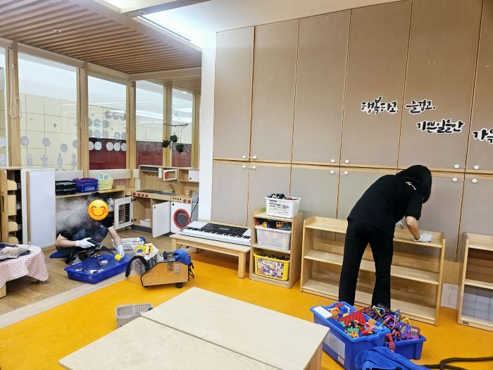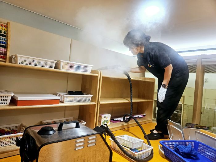 책걸상과 교구장, 교구재를 스팀세척살균소독 하였습니다.