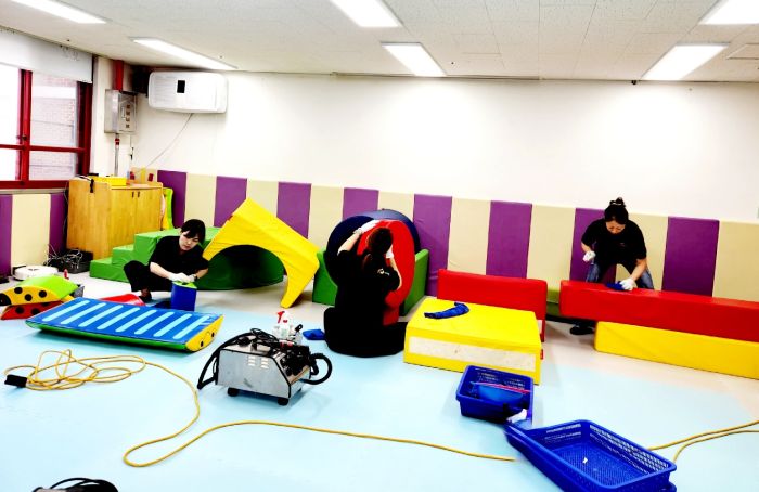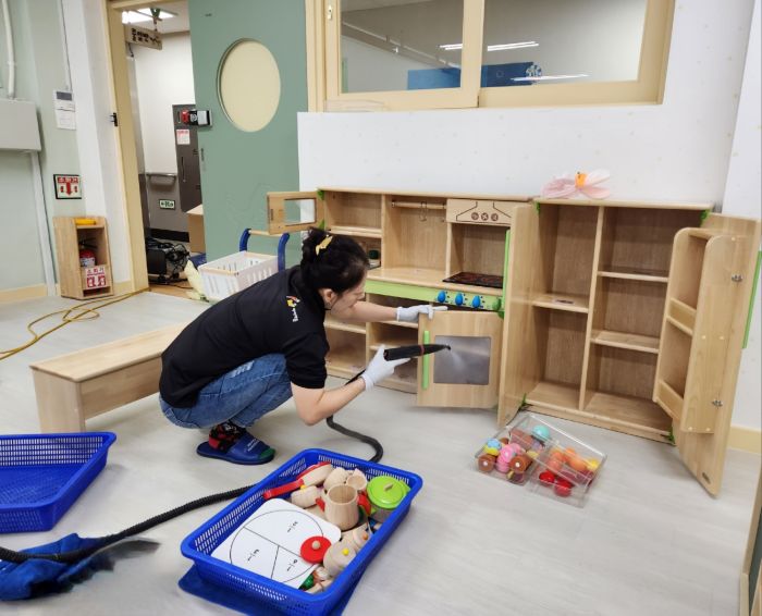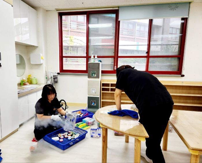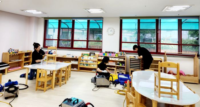 책걸상과 교구장, 교구재를 스팀세척살균소독 하였습니다.
