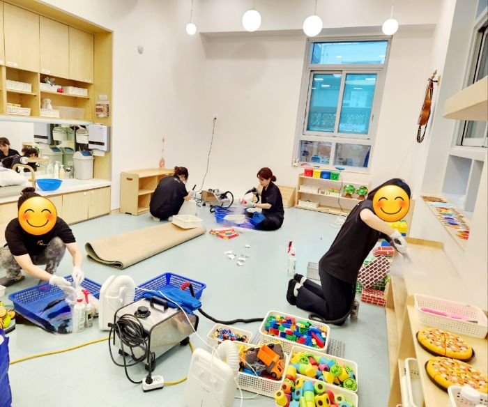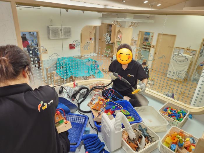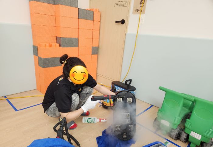 책걸상과 교구장, 교구재등을 스팀세척살균소독 하였습니다.