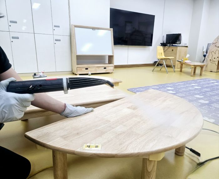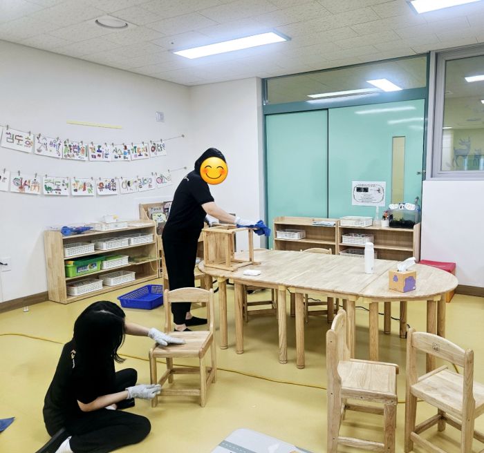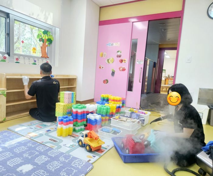 책걸상과 교구장, 교구재를 스팀세척살균소독 하였습니다.