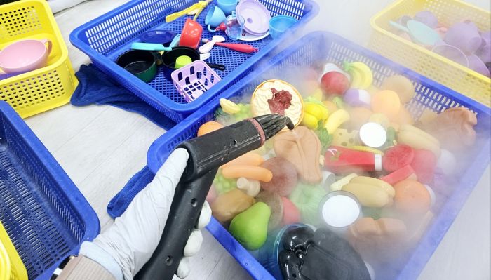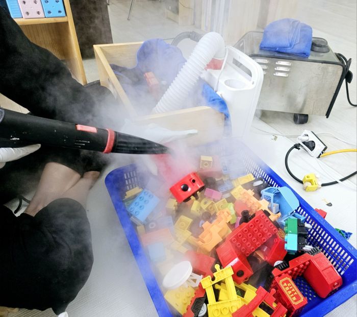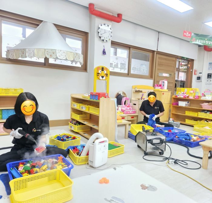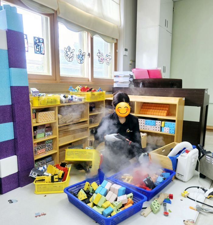 책걸상과 교구장, 교구재를 스팀세척살균소독 하였습니다.