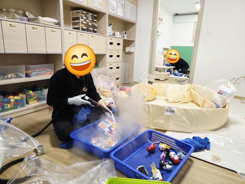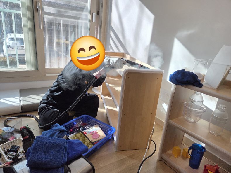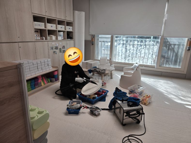 책걸상과 교구장, 교구재를 스팀세척살균소독 하였습니다.
