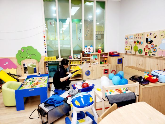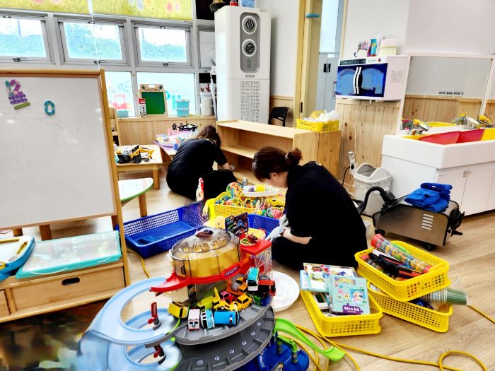 책걸상 교구장, 교구재를 스팀세척살균소독 하였습니다.