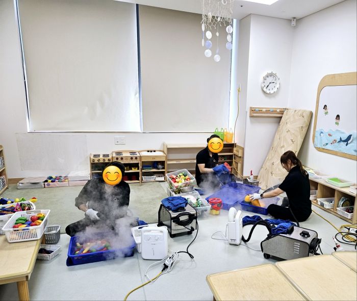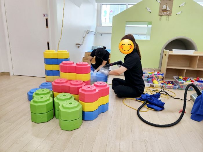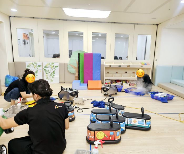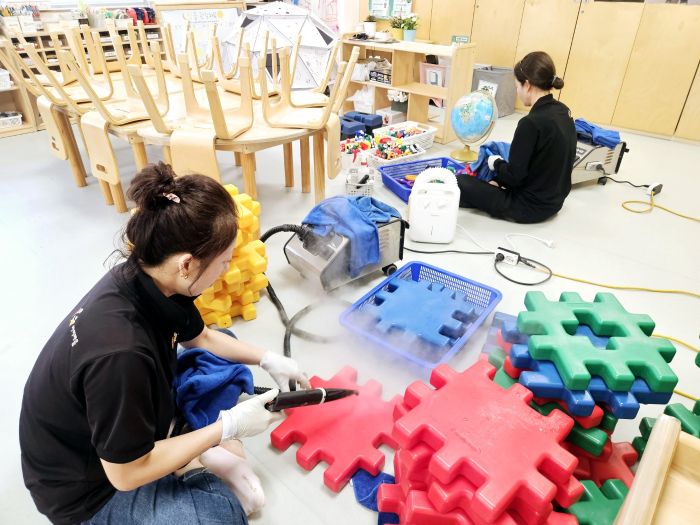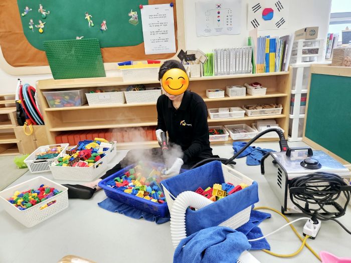 한섬아이 어린이집 장난감을 스팀세척살균소독 하였습니다.