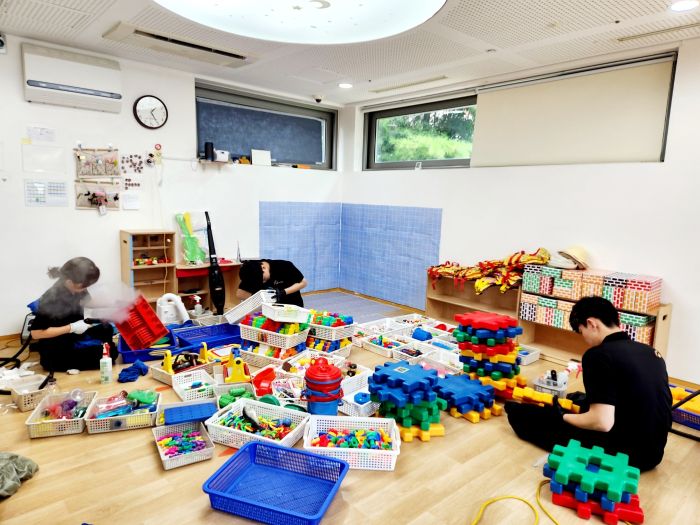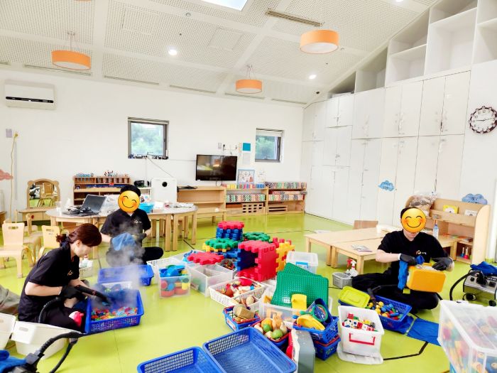 농심어린이집 장난감을 스팀세척살균소독 하였습니다.