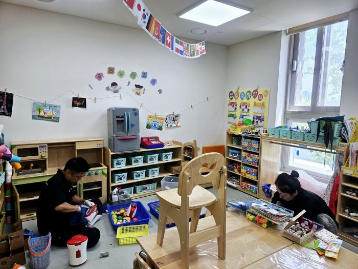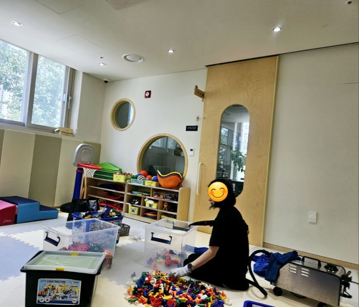 책걸상과 교구장 교구재 등 원전체를 스팀세척살균소독 하였습니다.
