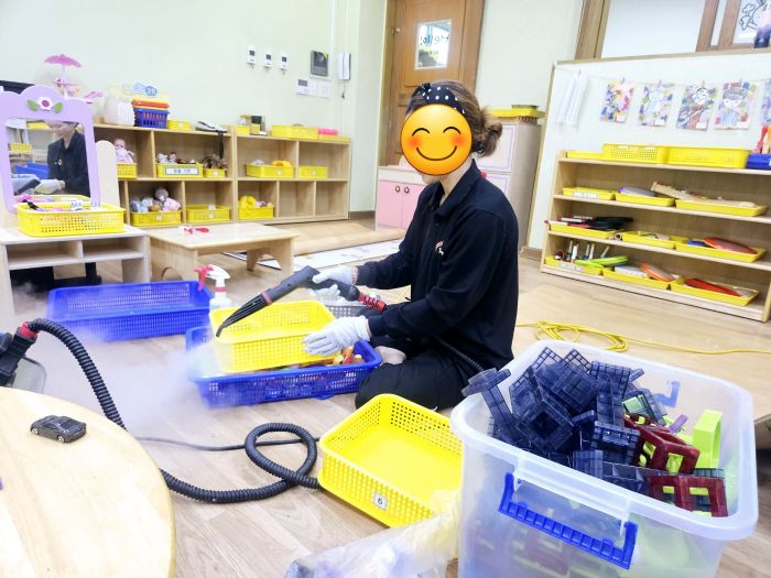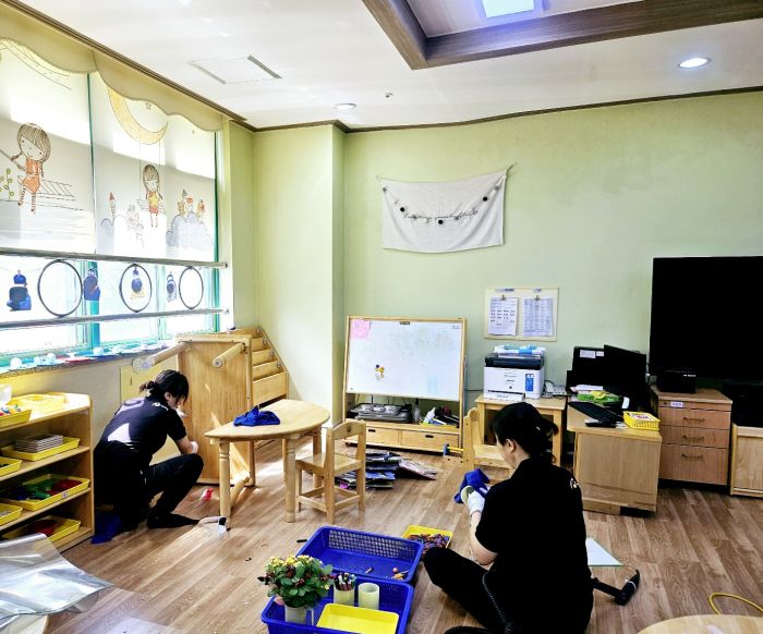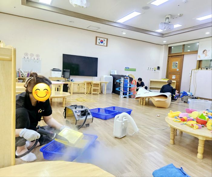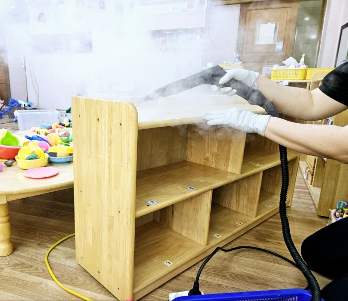 책걸상과 교구장, 교구재를 스팀세척살균소독 하였습니다.