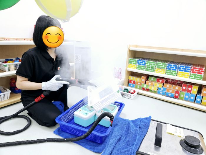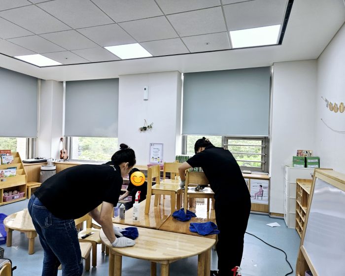 책걸상 교구장, 교구재를 스팀세척살균소독 하였습니다.