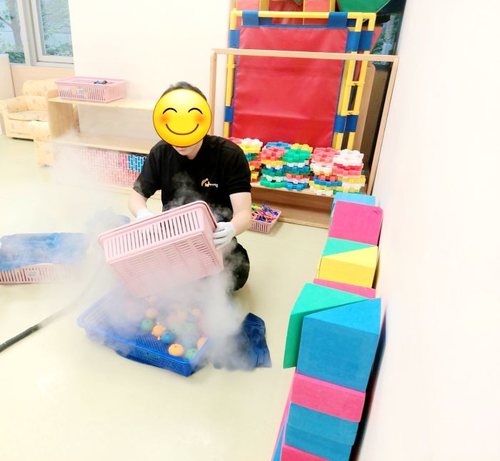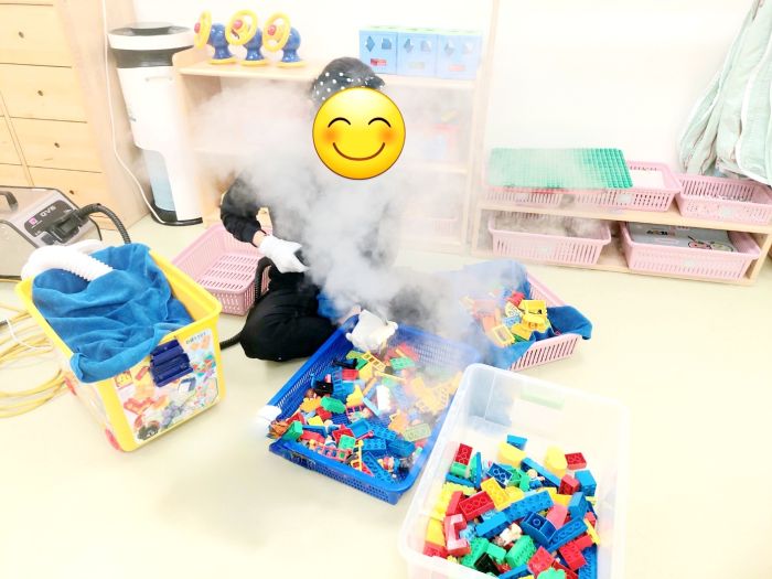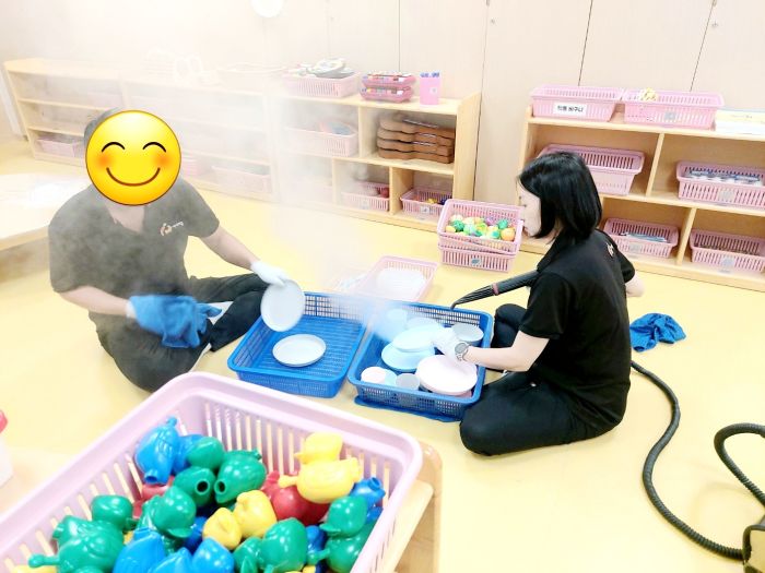 장난감을 스팀세척살균소독 하였습니다.