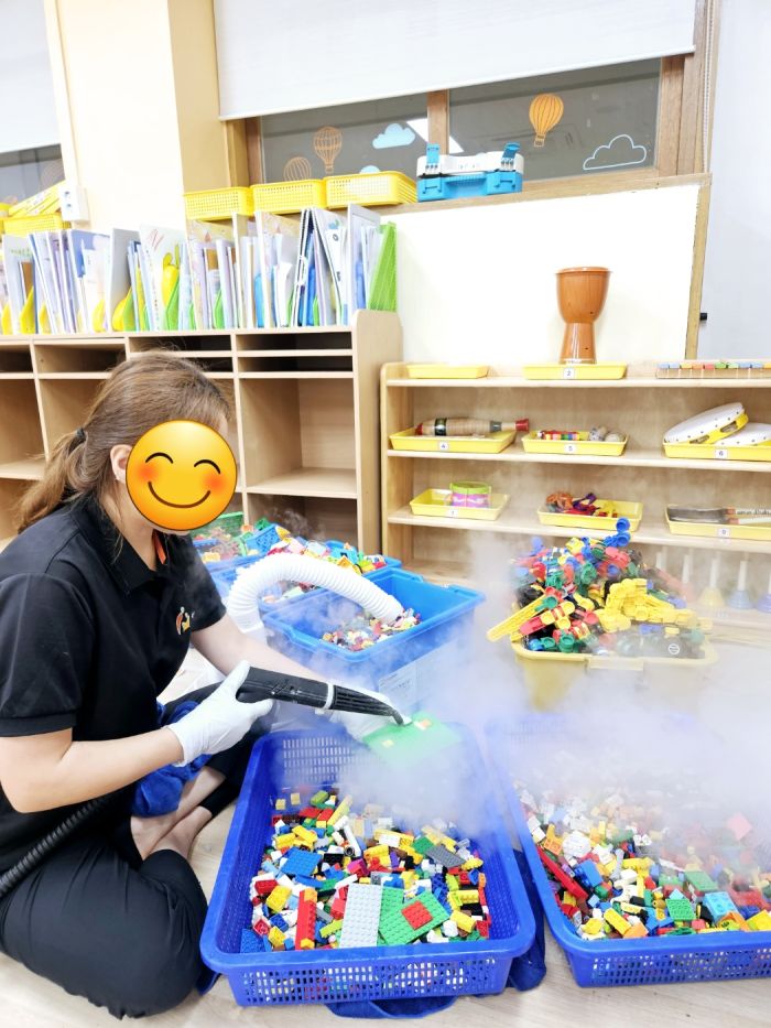 책걸상과 교구장 교구재를 스팀세척살균소독 하였습니다.