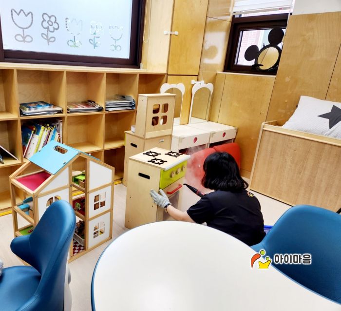 6개교실과 유희실등을 스팀세척살균소독 하였습니다.