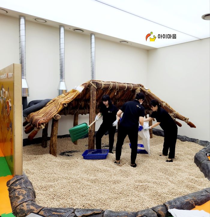 광교박물관 어린이체험존 편백나무칩을 세척소독하고
