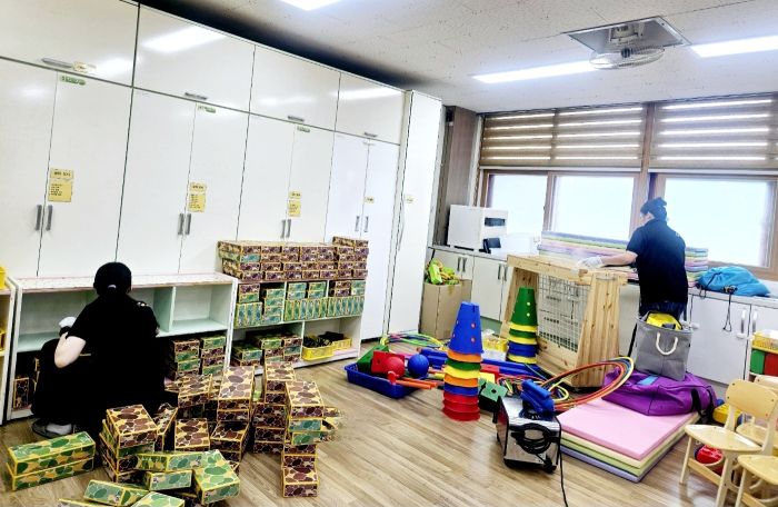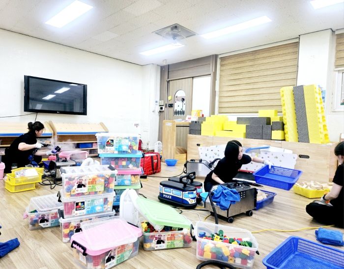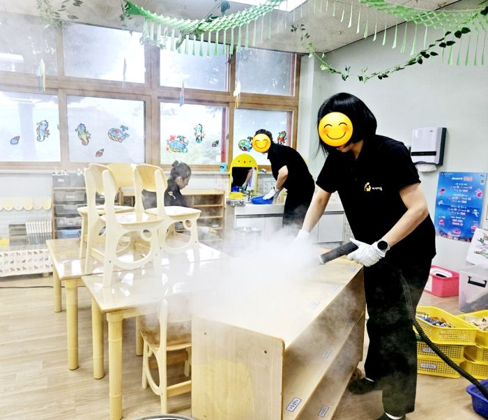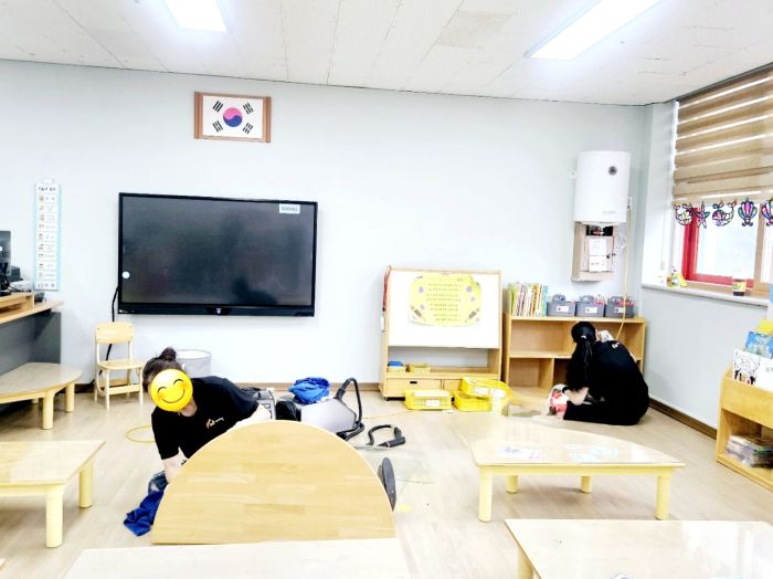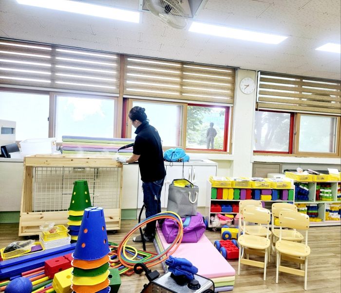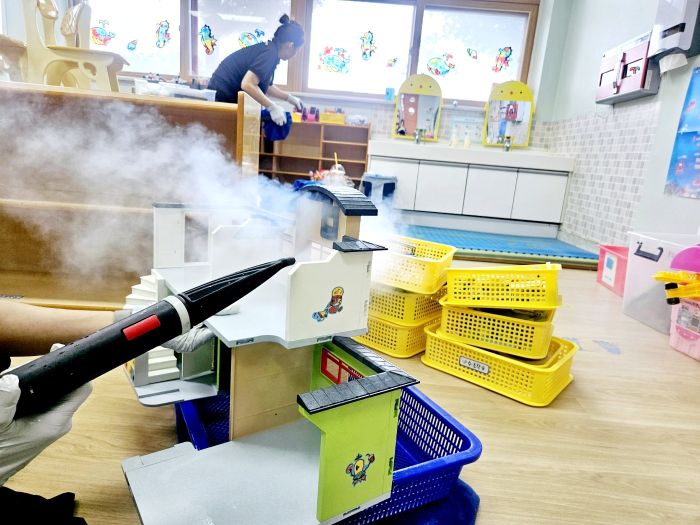 책걸상과 교구장, 교구재를 스팀세척살균소독 하였습니다.