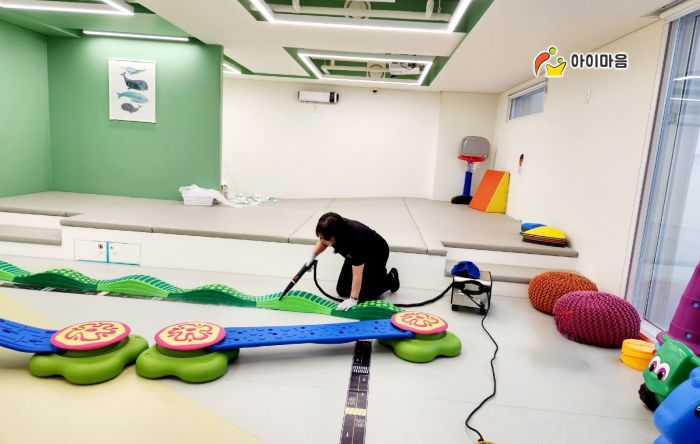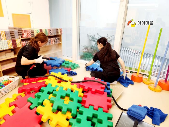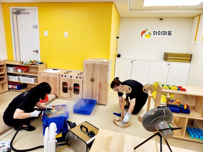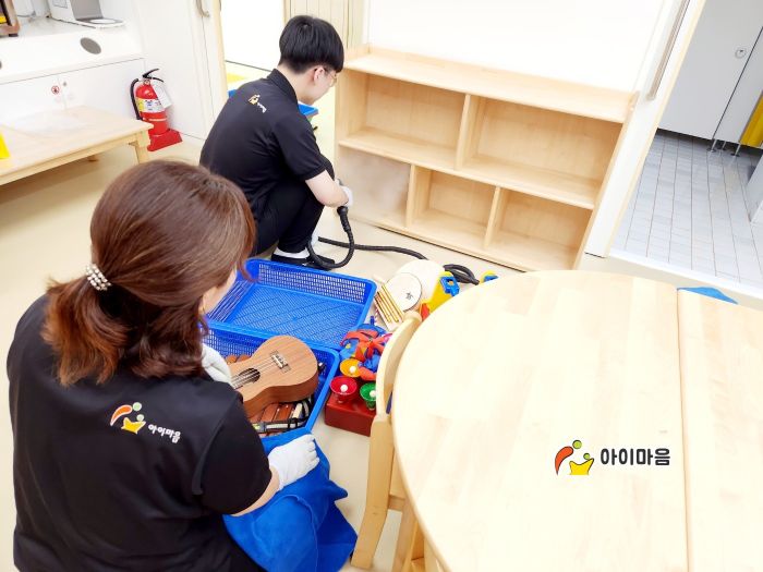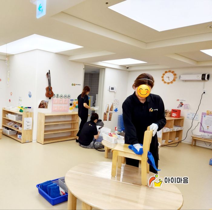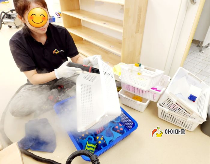 책걸상과 교구장, 교구재등 전체를스팀세척살균소독 하였습니다.