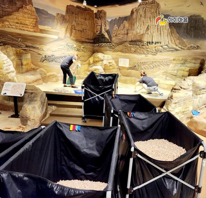 경기북부어린이박물관 공룡화석탐험발굴존 체험실 편백나무칩과 놀이터를