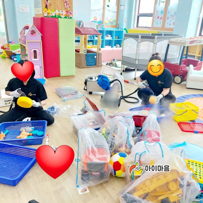 장난감과 실내전체를 스팀세척살균소독 하였습니다.