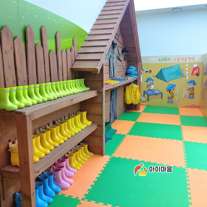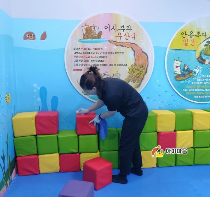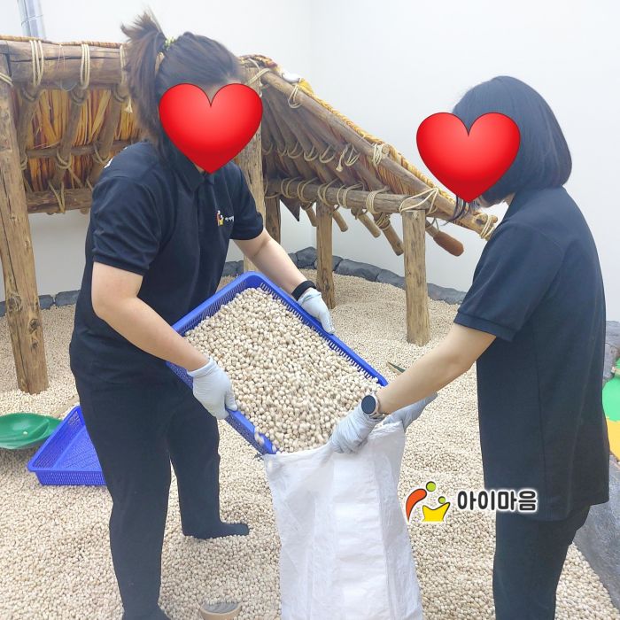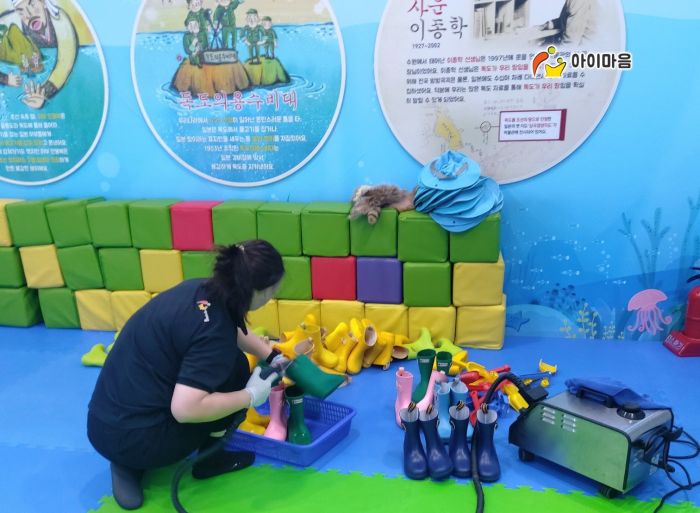 광교박물관 편백나무칩놀이터와 편백나무칩을 세척소독하고