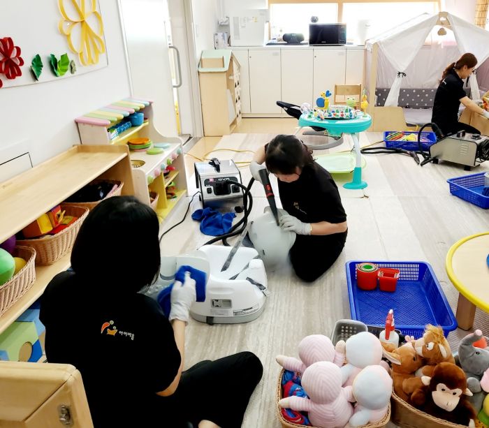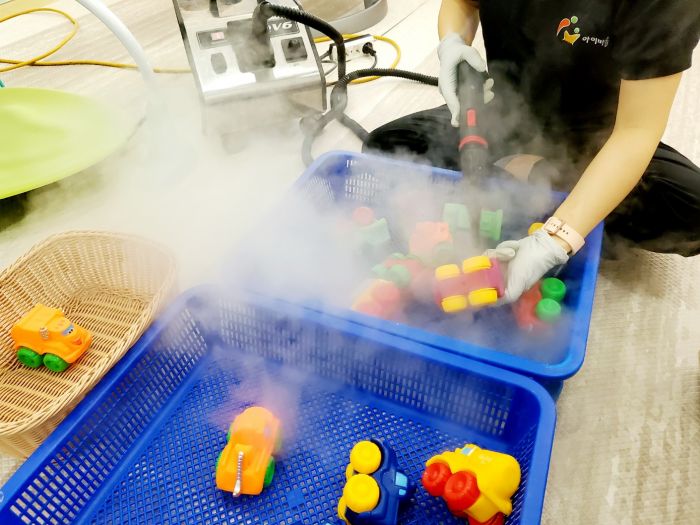 장난감과 실 전체를 스팀세척살균소독 하였습니다.