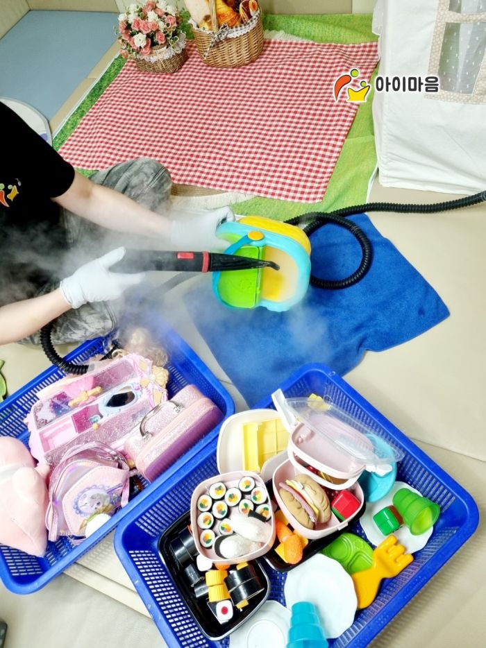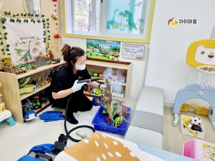 장난감과 시설물을 스팀세척살균소독 하였습니다.