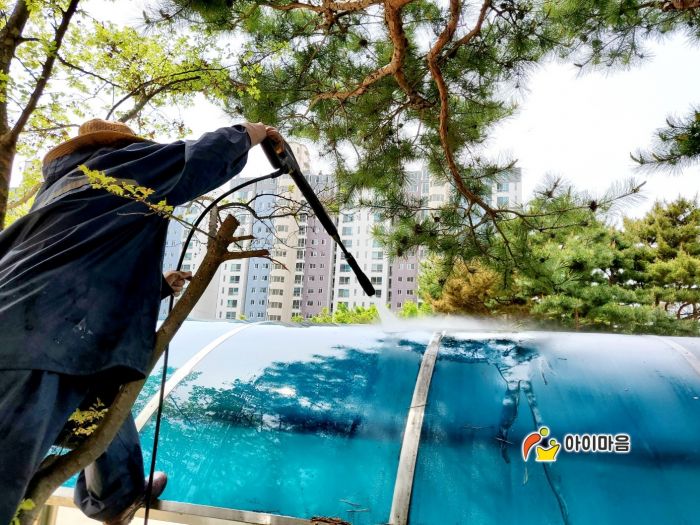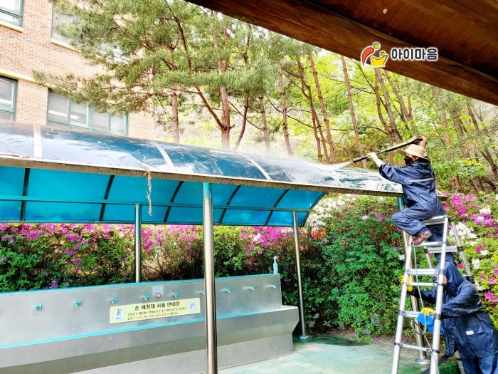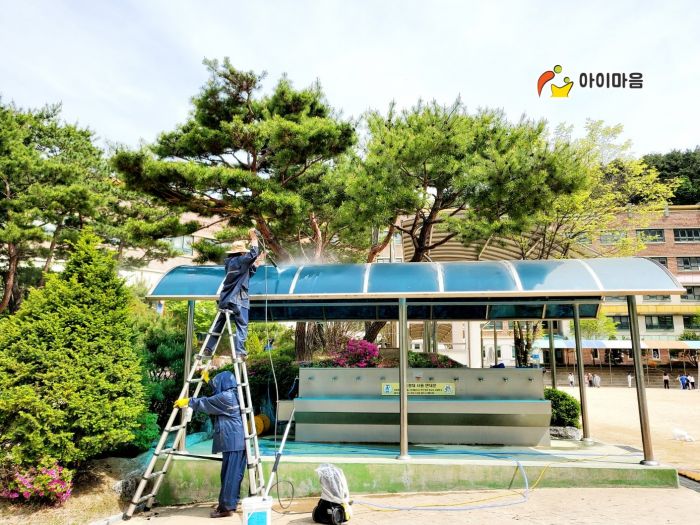 용인신일초 운동장 케노피 세척청소를 하였습니다.