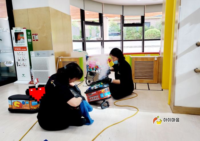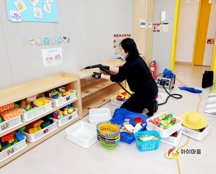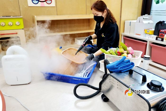 책걸상과 교구장, 교구재등을 스팀세척살균소독 하였습니다.