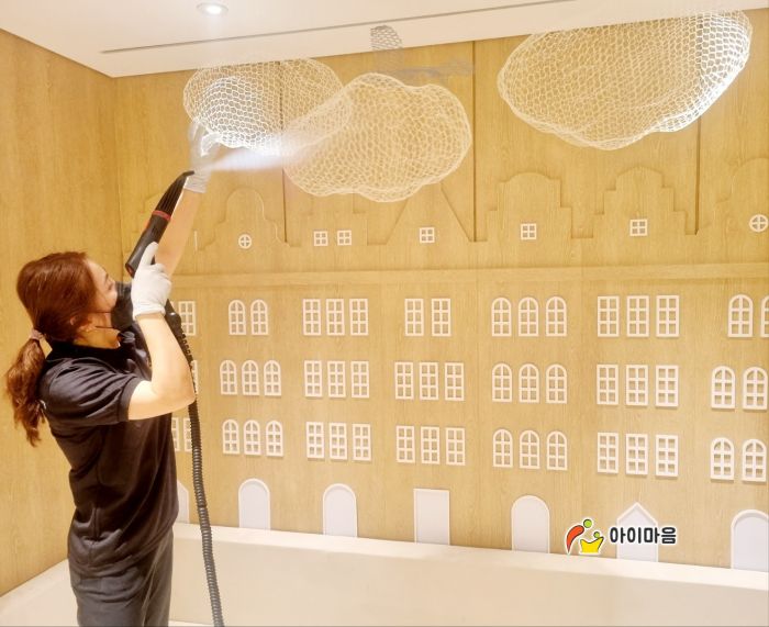 호텔신라 키즈룸 편백나무칩을 세척살균작업 하였습니다.