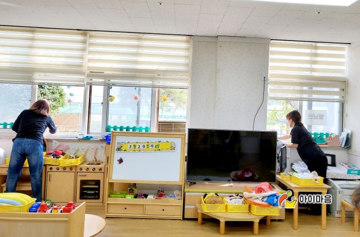 일산 현산초병설유치원 3개실 책걸상 교구장, 교구재와 바닥과 창틀을