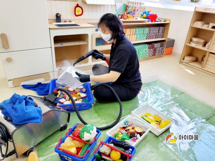 책걸상과 교구장, 교구재를 스팀세척살균소독 하였습니다.