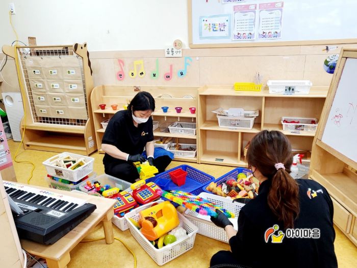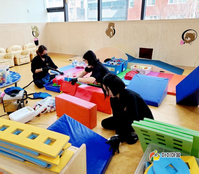 4개실과 2개의유희실 장난감을 스팀세척살균소독 하였습니다.