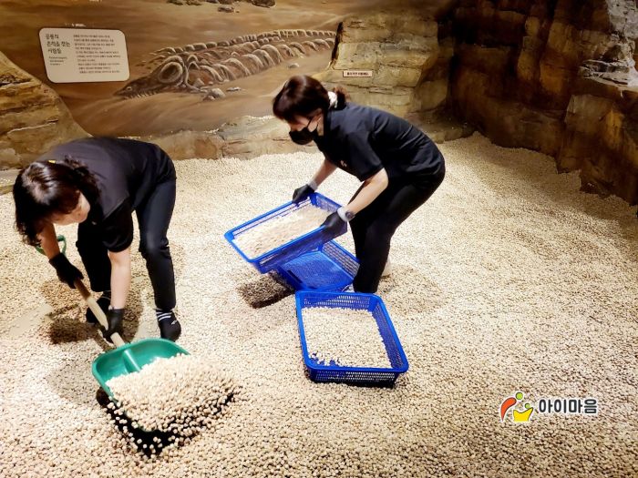 오감숲속놀이존 캬펫을 세척소독작업 하고,