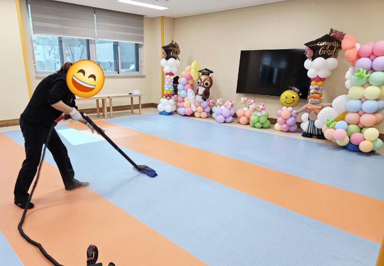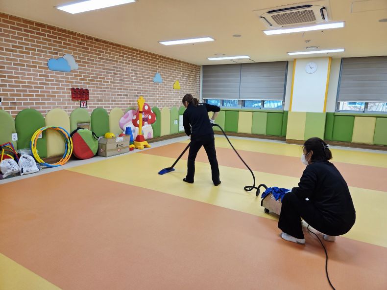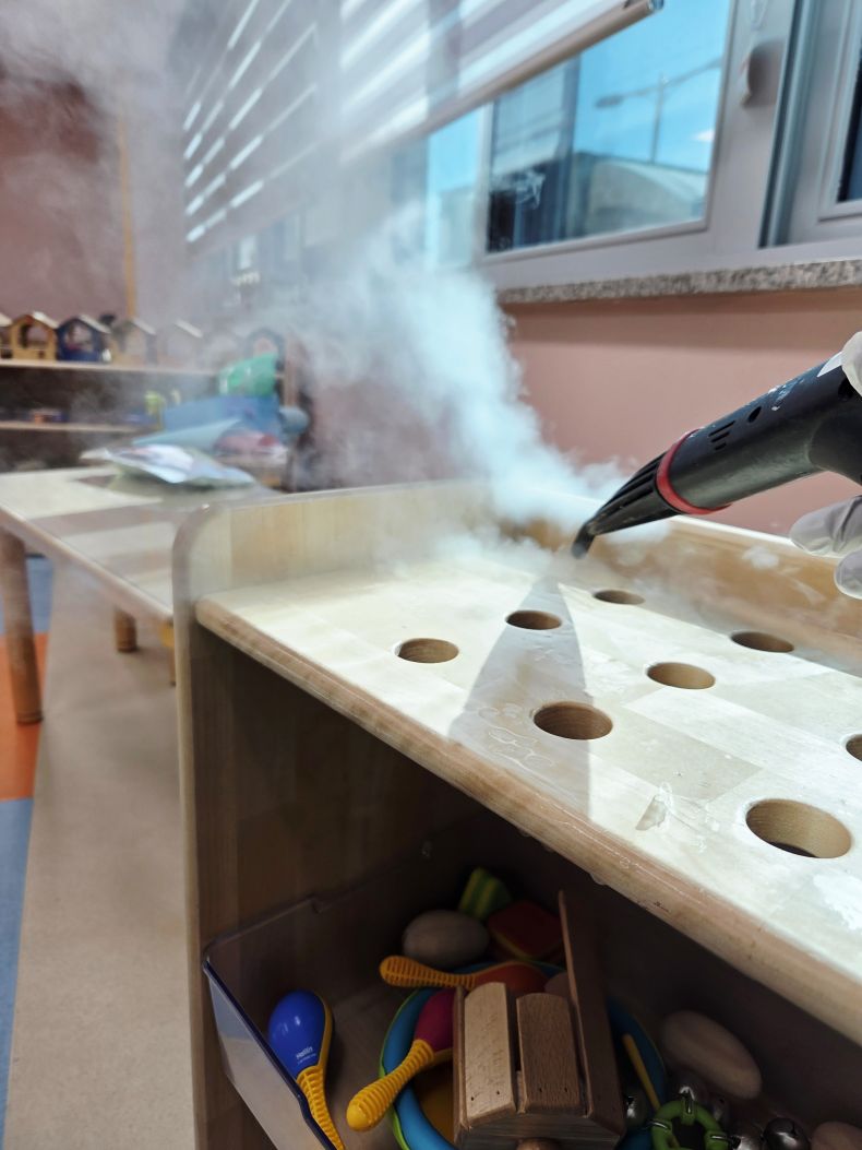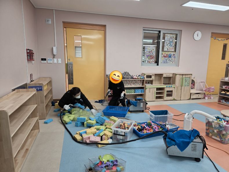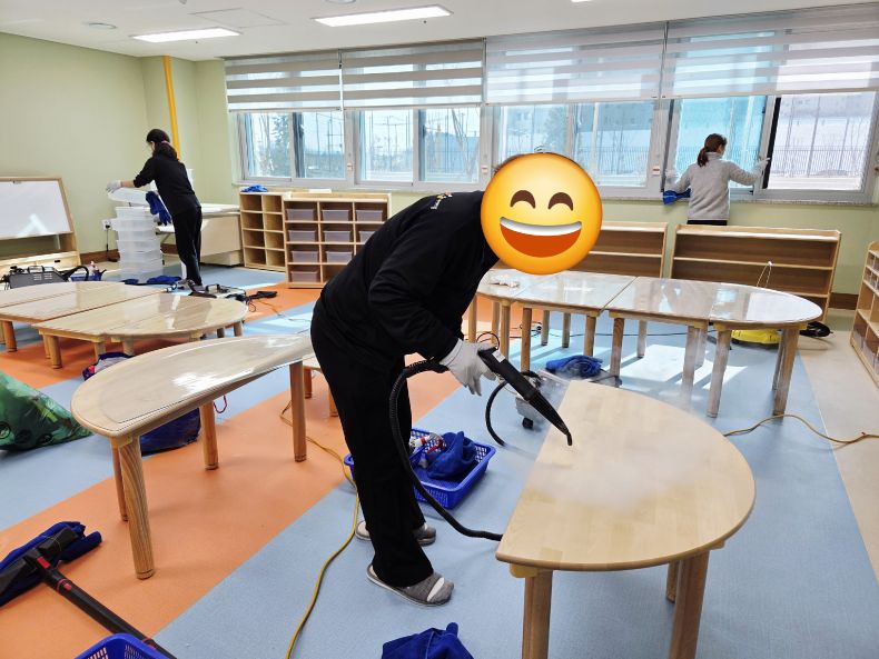책걸상과 교구장, 교구재를 스팀세척살균소독 하였습니다.