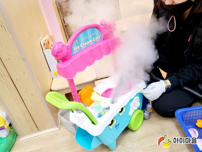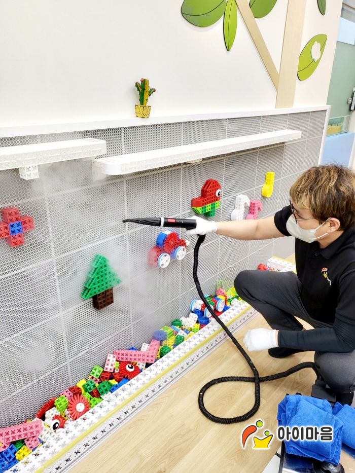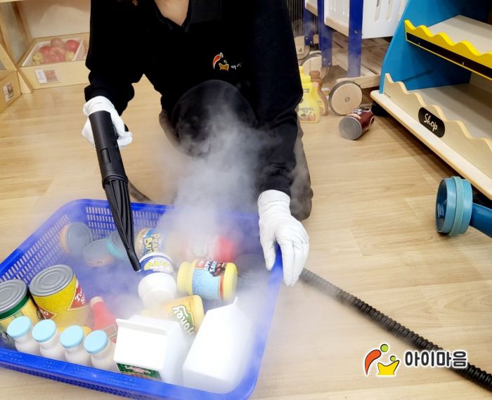 교구장과 장난감, 카펫 등을 스팀세척살균소독 하고