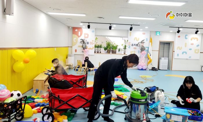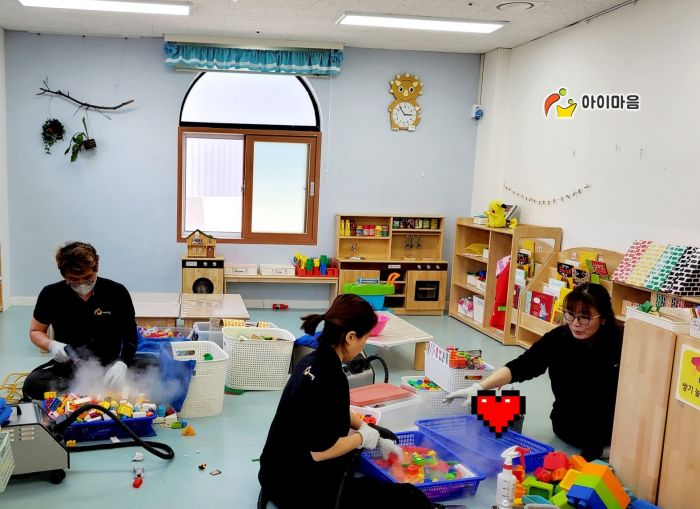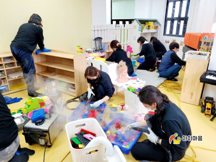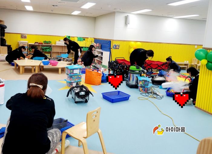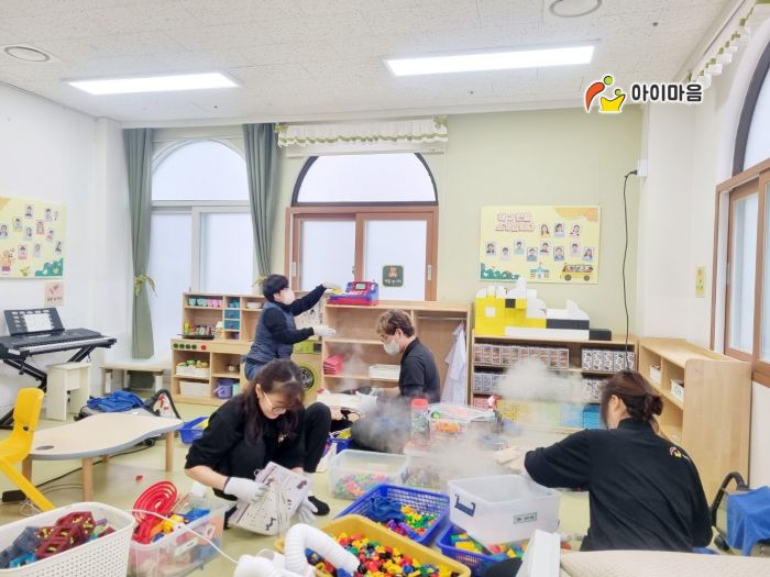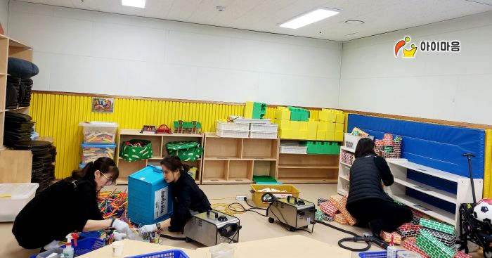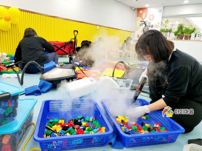 강당에 비치된 장난감과 신체놀이교구 등을 스팀세척살균소독 하였습니다.