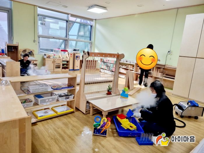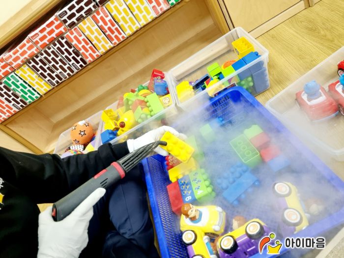 책걸상과 교구장, 교구재,장난감을 스팀세척살균소독 하였습니다.