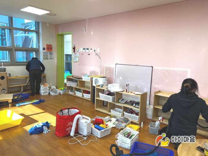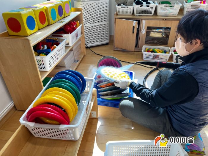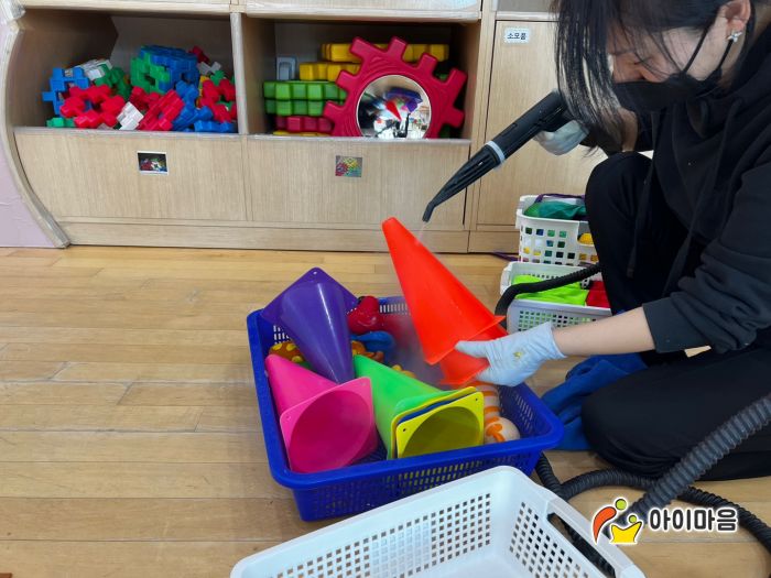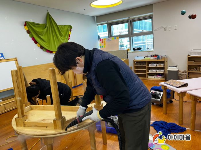 책걸상과 교구장, 교구재를 스팀세척살균소독 하였습니다.