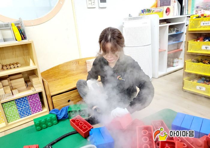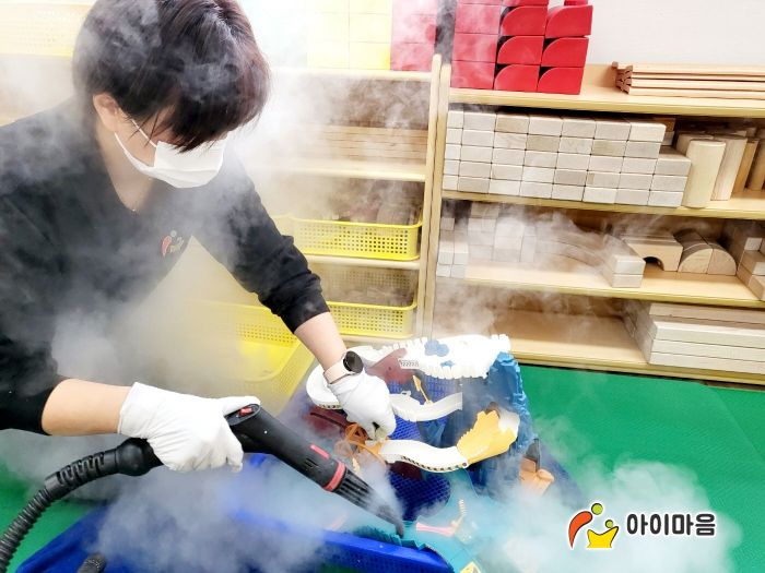 책걸상과 교구장, 교구재,장난감류를 스팀세척살균소독 하였습니다.
