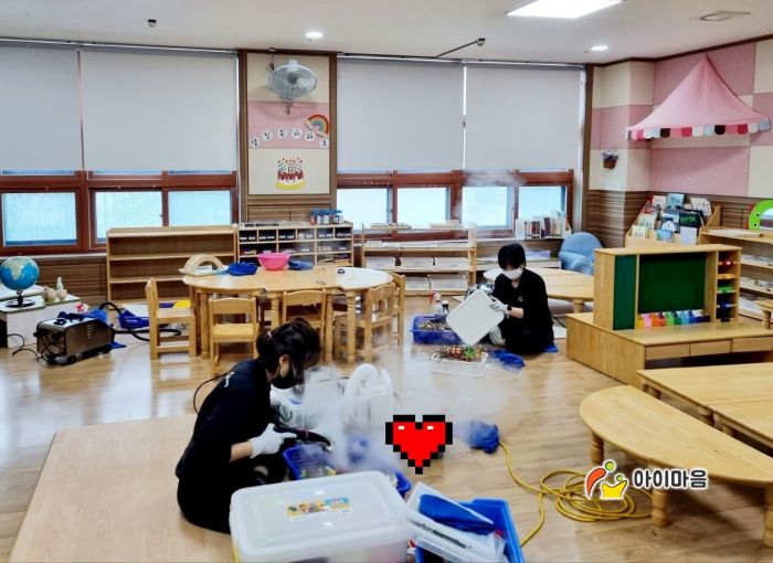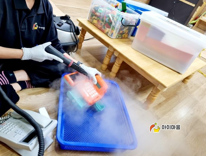 책걸상과 교구장, 교구재를 스팀세척살균소독 하였습니다.