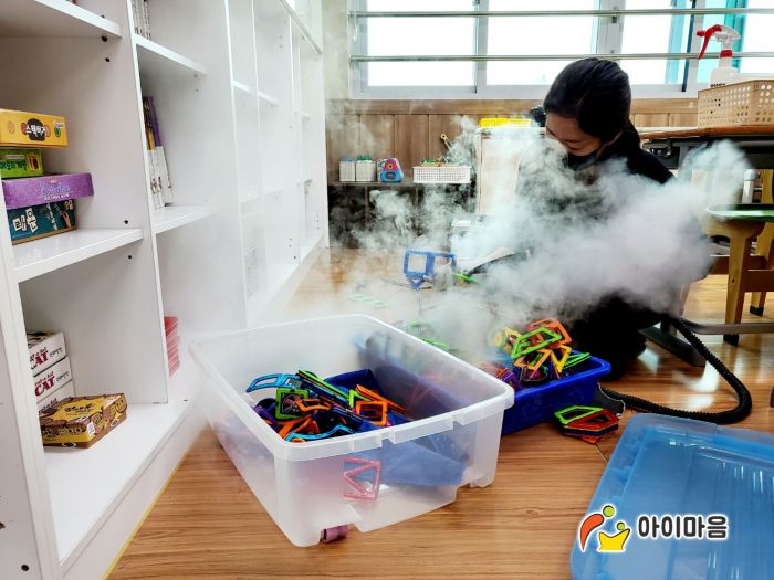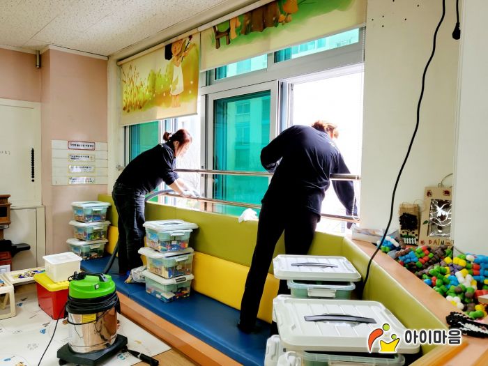 책걸상, 교구장, 교구재와 창틀과 바닥등을