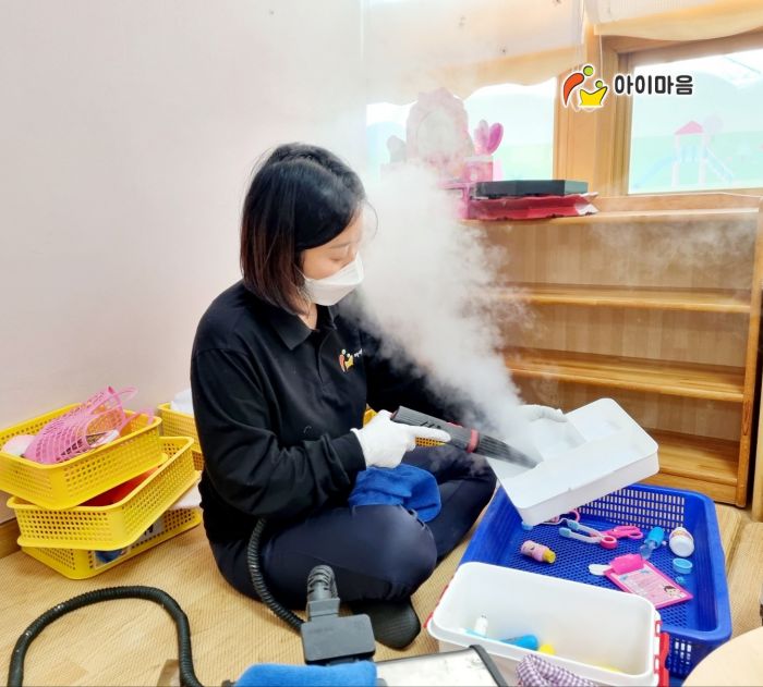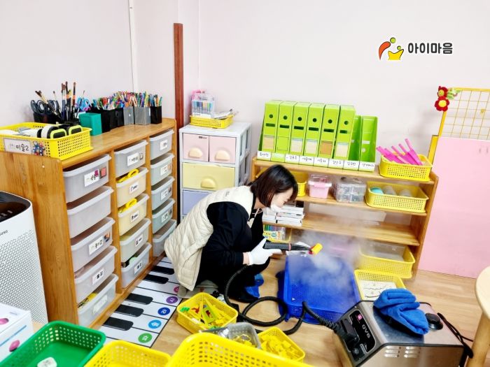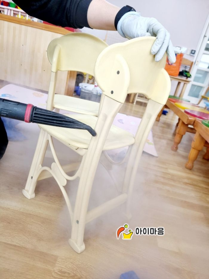 책걸상과 교구장, 교구재 등을 스팀세척살균소독 하였습니다.