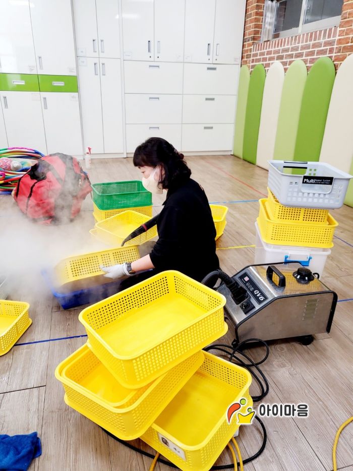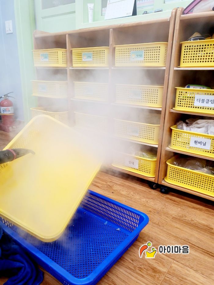 책걸상과 교구장, 교구재를 스팀세척살균소독 하였습니다.