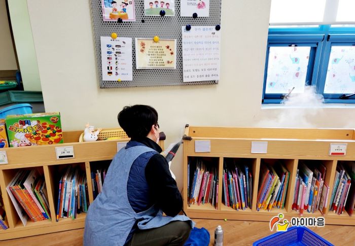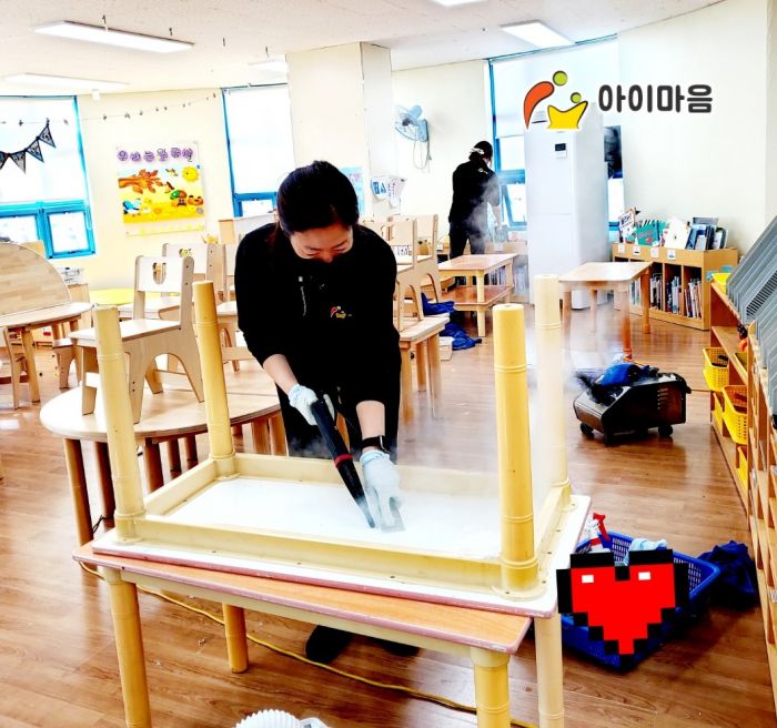 책걸상과 교구장, 교구재를 스팀세척살균소독 하였습니다.