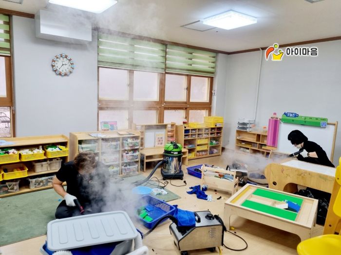 책걸상 교구장, 교구재를 스팀세척살균소독 하였습니다.