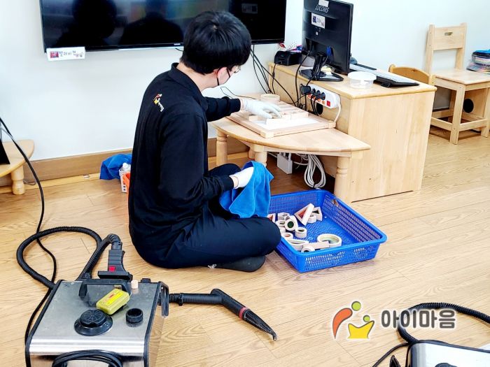 스팀,세척,살균,소독하였습니다