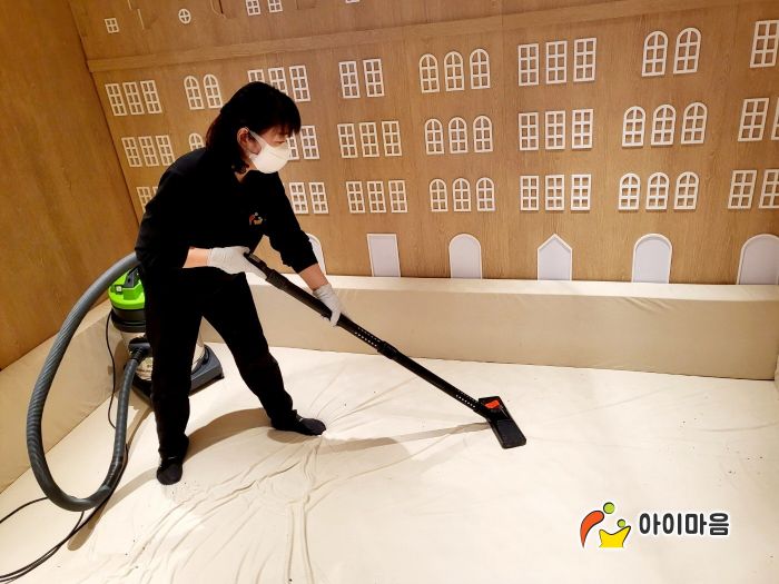서울 신라호텔 2개 키즈룸 편백나무칩을 세척소독하고