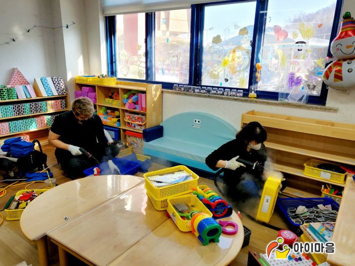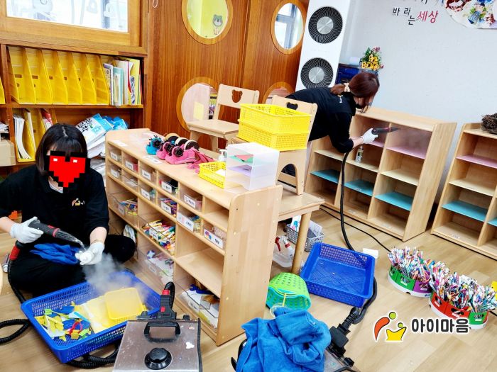 6개교실의 교구장,교구재,책걸상,장난감류를 스팀,세척,살균,소독 하였습니다 .