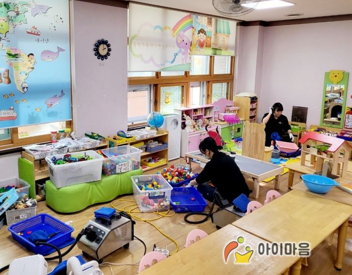 2개교실의 교구장 교구재 책걸상 장난감류를