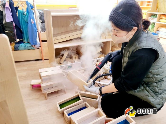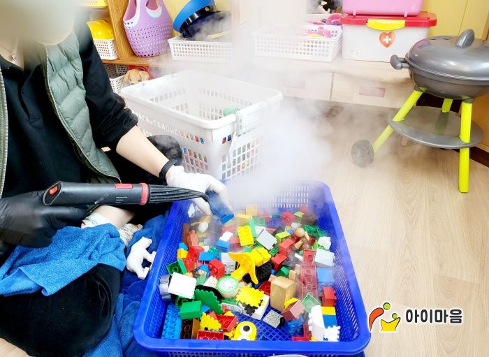 교구장,책걸상,장난감류를 스팀,세척,살균,소독하였습니다.